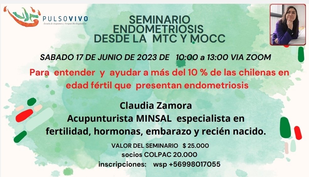 Les hacemos llegar invitación de Pulsovivo para esta masterclass que abordará la Endometriosis desde la mirada de la Medicina Tradicional China.